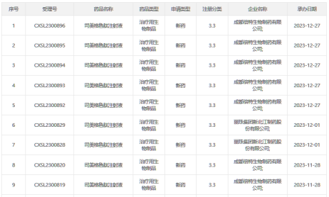 在齊魯制藥之前,2024年4月3日,杭州九源基因工程股份有限公司提交的司美格魯肽注射液的上市申請獲CDE正式受理,成為中國內(nèi)地首個提交上市申請的司美格魯肽生物仿制藥。緊隨其后,6月12日,麗珠醫(yī)藥集團旗下的新北江制藥公司也宣布其司美格魯肽注射液的上市申請獲得受理。
