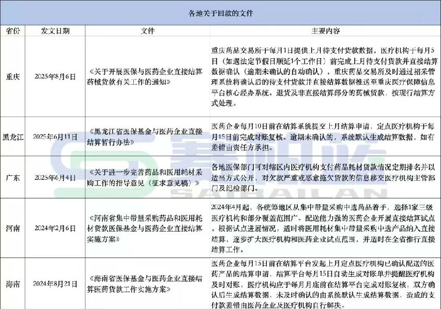 集采藥品耗材、國(guó)談藥回款難問(wèn)題,全部破解時(shí)間將至。 01 醫(yī)保直接結(jié)算推進(jìn)提速 集采內(nèi)回款效率迎來(lái)突破 根據(jù)國(guó)家醫(yī)保局要求,2025年全國(guó)基本實(shí)現(xiàn)集采藥品耗材、國(guó)談藥的直接結(jié)算,2026年全國(guó)全面實(shí)現(xiàn)集采藥品耗材、國(guó)談藥的直接結(jié)算。 當(dāng)前已進(jìn)入8月末,距離 “全國(guó)全面實(shí)現(xiàn)集采藥品耗材、國(guó)談藥直接結(jié)算” 的最終目標(biāo)時(shí)限已進(jìn)入關(guān)鍵沖刺階段,各項(xiàng)配套工作推進(jìn)節(jié)奏明顯加快。 近日,2025年全國(guó)醫(yī)療保障工作年中座談會(huì)在陜西召開(kāi),會(huì)議要求,逐步擴(kuò)大醫(yī)?;饘?duì)醫(yī)藥機(jī)構(gòu)即時(shí)結(jié)算范圍。 從階段性成效來(lái)看,截至6月底,全國(guó)超90%的統(tǒng)籌地區(qū)實(shí)現(xiàn)即時(shí)結(jié)算,撥付時(shí)限壓縮至申報(bào)后20個(gè)工作日內(nèi)。與此同時(shí),醫(yī)?;饘?duì)醫(yī)藥集采企業(yè)直接結(jié)算推進(jìn)同樣成效顯著,平均結(jié)算周期壓縮至30天以內(nèi)。 據(jù)賽柏藍(lán)觀察,截至目前,全國(guó)已有多個(gè)省份及統(tǒng)籌地區(qū)率先響應(yīng)國(guó)家要求,發(fā)布了針對(duì)醫(yī)保與醫(yī)藥企業(yè)直接結(jié)算的地方性實(shí)施細(xì)則或推進(jìn)方案。 8月27日,重慶市醫(yī)保局發(fā)布《關(guān)于開(kāi)展醫(yī)保與醫(yī)藥企業(yè)直接結(jié)算藥械貨款有關(guān)工作的通知》的政策解讀,重慶藥品交易所每月1日提供上月待支付貨款數(shù)據(jù),醫(yī)療機(jī)構(gòu)于每月5日前完成上月待支付貨款并直接結(jié)算數(shù)據(jù)確認(rèn)。這一政策自9月15日起執(zhí)行。 8月26日,天津市醫(yī)藥采購(gòu)中心發(fā)布《關(guān)于藥品、醫(yī)用耗材集采中選品種2025年第8期直接結(jié)算》的通知,要求醫(yī)保定點(diǎn)醫(yī)藥機(jī)構(gòu)在8月27日-8月30日24:00完成本期待結(jié)算明細(xì)表網(wǎng)上確認(rèn);8月31日—9月3日12:00,經(jīng)營(yíng)企業(yè)完成本期待結(jié)算明細(xì)表網(wǎng)上確認(rèn)。 從地方反饋的實(shí)效來(lái)看,不少省份已明確體現(xiàn)出回款速度加快的積極變化。 例如,自5月以來(lái),浙江省藥械采購(gòu)平臺(tái)設(shè)置集采品種和國(guó)談藥品結(jié)算專區(qū),至6月30日,1182家醫(yī)保定點(diǎn)機(jī)構(gòu)完成結(jié)算金額近58億元,按時(shí)結(jié)算率99.90%,其中1136家實(shí)現(xiàn)100%按時(shí)結(jié)算;江蘇鹽城市第一人民醫(yī)院自今年1月以來(lái),開(kāi)展醫(yī)?;鸺磿r(shí)結(jié)算改革試點(diǎn),醫(yī)?;鸾Y(jié)算縮短到一個(gè)工作日,日均現(xiàn)金流增加200萬(wàn)元,到目前已累計(jì)撥付1.5億元。 不過(guò),行業(yè)反饋呈現(xiàn)明顯差異化特征,集采內(nèi)藥品回款改善顯著,但集采之外的普通藥品仍陷“回款難、回款慢” 困境。 黑龍江一醫(yī)藥商業(yè)企業(yè)人士向賽柏藍(lán)表示,相較于一年前,其手上集采藥品的回款已基本追回,“主要是政策壓力傳導(dǎo)到位,且集采藥品本身貨款規(guī)模相對(duì)可控,因此回款速度明顯加快”,但該人士同時(shí)指出,集采范圍之外的普通藥品,回款難、回款慢的壓力依然較大,成為當(dāng)前結(jié)算改革尚未完全覆蓋的領(lǐng)域。 02 集采外藥品回款難仍是長(zhǎng)期痛點(diǎn) 多因素疊加影響回款周期 事實(shí)上,藥品回款難一直是行業(yè)長(zhǎng)期存在的核心痛點(diǎn)。從醫(yī)院的資金壓力、醫(yī)保結(jié)算的滯后性到流通環(huán)節(jié)的層層墊付以及企業(yè)自身的管理問(wèn)題多重因素疊加下,回款周期不斷拉長(zhǎng)。 集采之外藥品的回款不適用集采的 “統(tǒng)一回款周期”,而是由參與方通過(guò)合同約定,醫(yī)院或商業(yè)公司未按合同約定時(shí)間付款,藥品入庫(kù)數(shù)量、破損理賠、發(fā)票問(wèn)題導(dǎo)致付款金額與約定不符以及藥品配送延遲、質(zhì)量問(wèn)題與回款掛鉤等問(wèn)題均會(huì)影響回款進(jìn)度。