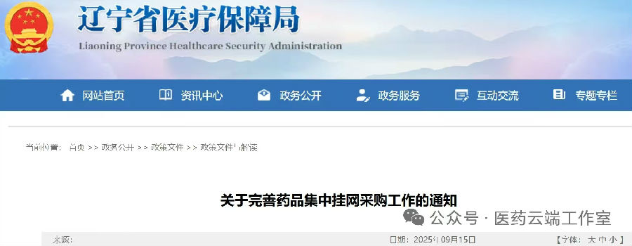 9月15日,遼寧省醫(yī)保局發(fā)布《關(guān)于完善藥品集中掛網(wǎng)采購(gòu)工作的通知》(遼醫(yī)保規(guī)〔2025〕4號(hào)),自2025年10月1日起實(shí)施。原遼寧省有關(guān)藥品集中掛網(wǎng)采購(gòu)規(guī)定與本通知不一致的,以本通知為準(zhǔn)。