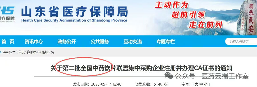 9月17日,山東省醫(yī)保局發(fā)出《關于第二批全國中藥飲片聯(lián)盟集中采購企業(yè)注冊并辦理CA證書的通知》這意味著由山東牽頭的全國中藥飲片聯(lián)采即將拉開序幕。