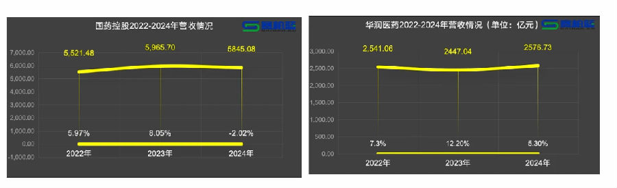 2024年,國(guó)藥控股營(yíng)收、歸母凈利潤(rùn)均出現(xiàn)下降;華潤(rùn)醫(yī)藥營(yíng)收實(shí)現(xiàn)增長(zhǎng),歸母凈利潤(rùn)出現(xiàn)下滑。