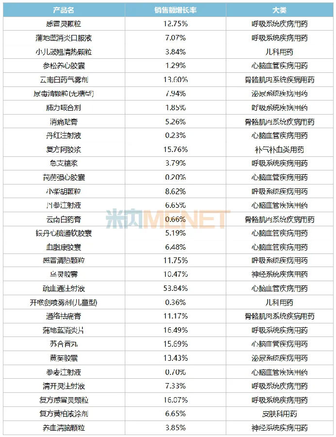 表2:2024年中成藥13個(gè)大類的增長(zhǎng)情況