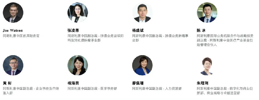 阿斯利康中國領(lǐng)導(dǎo)團隊如下