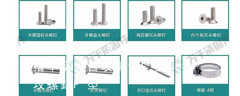 1、頭部形狀頭部形狀各式各樣。有圓頭(半圓頭)、扁圓頭、圓頭凸緣(帶墊)、扁圓頭凸緣(帶墊)、盤(pán)頭、盤(pán)頭凸緣(帶墊)、沉頭、半沉頭、圓柱頭、球面圓柱頭、喇叭頭、六角頭、六角法蘭頭、六角凸緣(帶墊)頭等。2